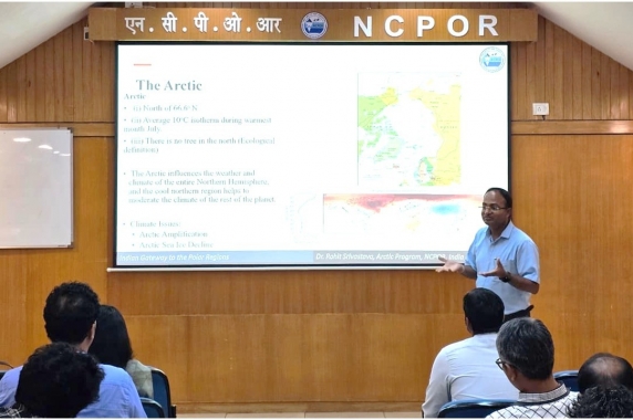 Dr. Rahul Mohan, Scientist-G & Group Director, highlighted NCPOR’s key initiatives in polar and ocean research, while Dr. Rohit Srivastava, Scientist-E, shared insights into India’s Arctic expeditions and ongoing research in the region.
