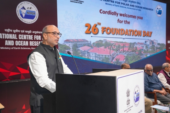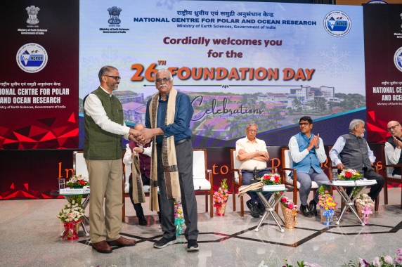During the 26th Foundation Day celebrations, Dr. Thamban Meloth, Director, NCPOR, highlighted the institute’s key achievements and reaffirmed its commitment to advancing polar and ocean sciences. He emphasized India’s growing leadership and active engagement in the global polar community. Offering an academic perspective, Prof. Suman Kundu, Director, BITS Goa, underscored the importance of strengthening collaboration between academia and research institutions to create greater opportunities for young researchers and students.
