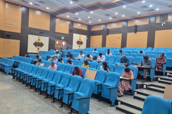 The "State Level Hindi Essay Writing Competition" was successfully organized on 19 February 2026 for the officials and employees of Goa State Central Offices/Initiatives/Banks/Autonomous Bodies in the institute under the supervision of Municipal Language Implementation Committee, South Goa. Participants from different offices of Goa state participated enthusiastically in this competition. The aim of the program was to encourage the propaganda of Raj language Hindi and promote the use of Hindi in office activities.