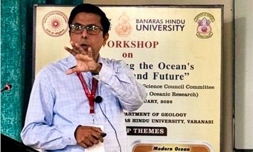 Dr. Manish Tiwari, Scientist-F and Group Director, delivered an invited lecture at the INSA–International Science Council Committee for SCOR National Workshop on “Understanding the Ocean’s Past, Present, and Future”, held at the Department of Geology, Institute of Science, Banaras Hindu University (18–19 February 2026).