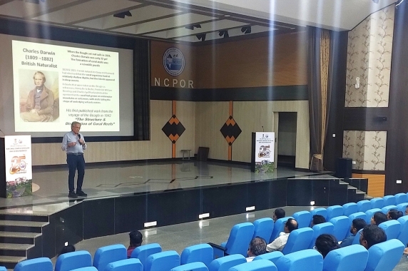 NCPOR hosted Prof. Andre Droxler, Emeritus Professor at Rice University and an eminent marine geologist and oceanographer, on 23 September 2025. He delivered an insightful talk on “The Origin of Modern Atolls: Challenging Darwin’s Deeply Ingrained Theory”. Prof. Droxler shared his expertise on coral reef and carbonate platform morphology, glacial–interglacial sedimentation processes, and the impacts of climate and sea-level changes.